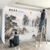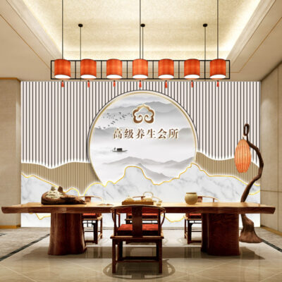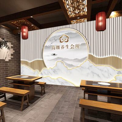 Giấy dán tường 3D bảo tàng sức khỏe ba chiều quầy lễ tân hình nền câu lạc bộ phòng trà phong cách Trung Quốc mới vải treo tường chọn tai cửa hàng quầy bar trang trí hình nền