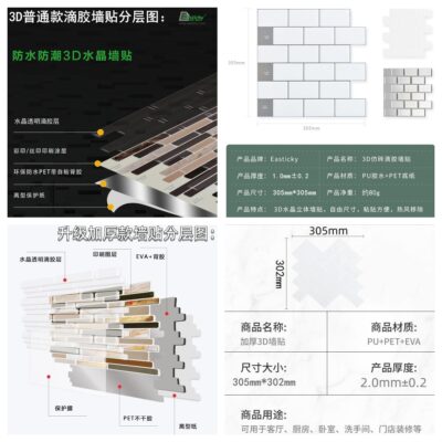 墙贴介绍:墙纸自粘批发防水防潮滴胶墙贴3d立体隔热壁纸厨房浴室装饰墙贴纸 |