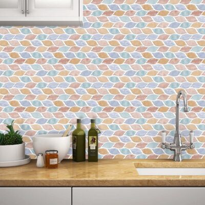 3,快速安装:不需要特别的技能,也不需要多余别的材料,只要撕掉背纸,然后将            马赛克墙贴贴于干净整洁的墙面上,一张边沿紧挨压着 前一 张,简单快速安                装,节省人力物力成本。