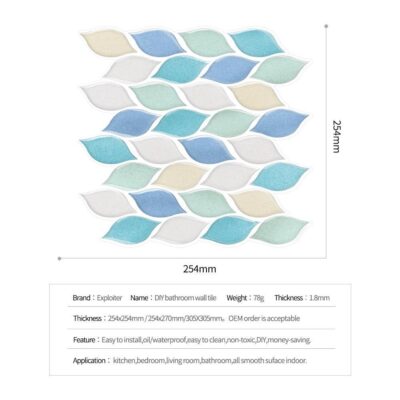 Giấy dán tường hình chiếc lá tự dính 3D ba chiều Nền TV nhà bếp phòng tắm dán gạch chống thấm nước và dầu dán pha lê nhỏ giọt keo dán tường