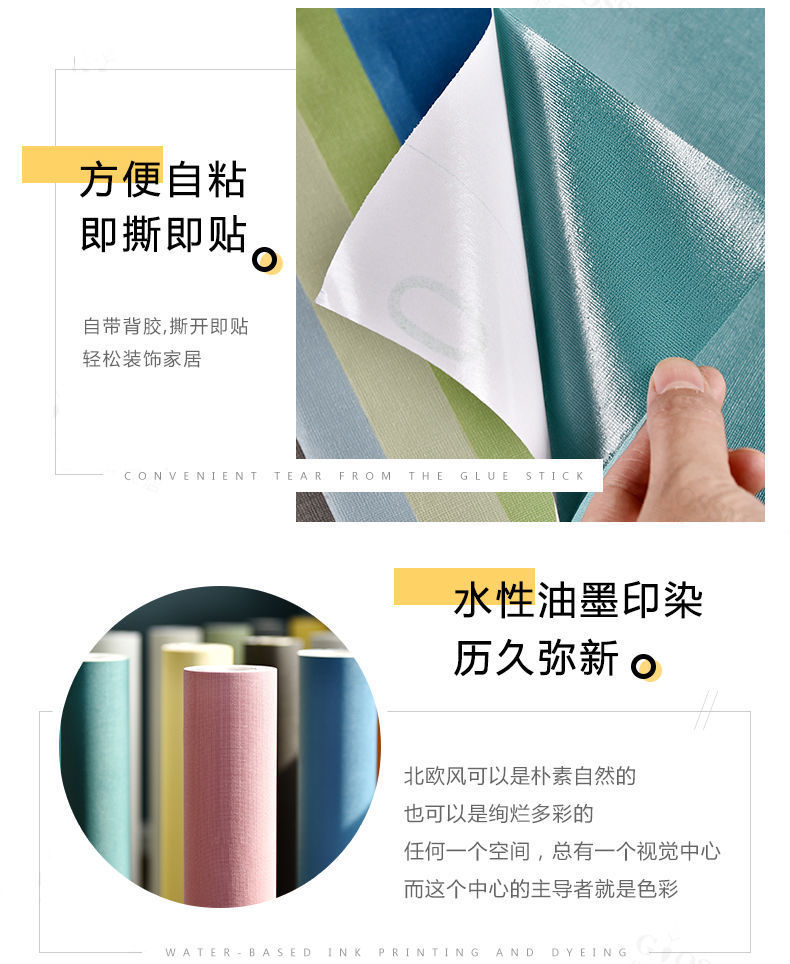 Giấy dán tường màu trơn phòng ngủ tự dính ấm PVC sắc tố màu ký túc xá chống ẩm nhà tự dính giấy dán tường máy tính để bàn sticker nhà máy