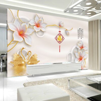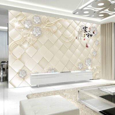 Giấy dán tường nền TV phòng ngủ phòng khách ba chiều 8 bức tường truyền hình và phim liền mạch bao phủ toàn bộ ngôi nhà hoa túi mềm và bức tranh tường