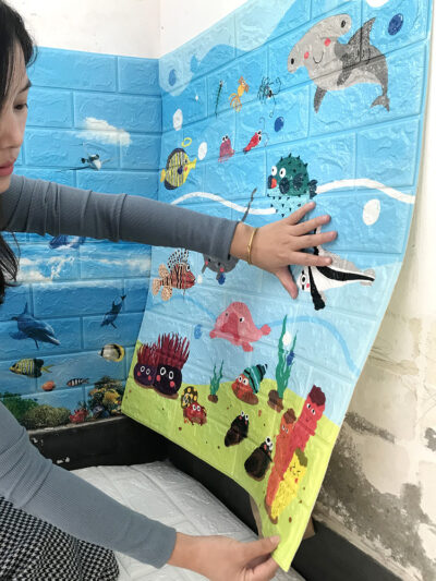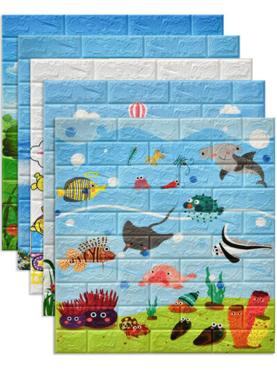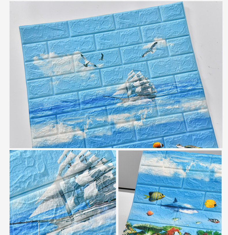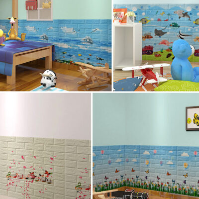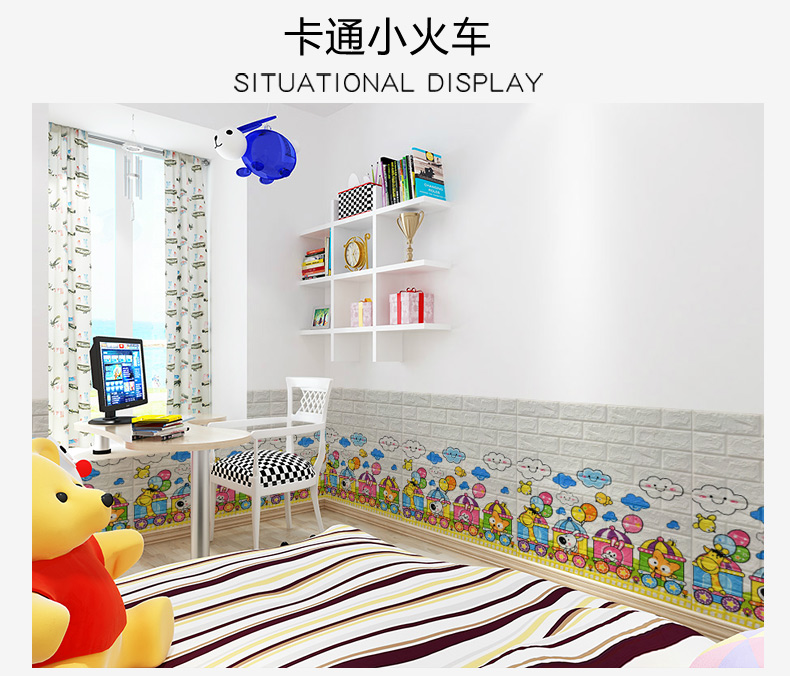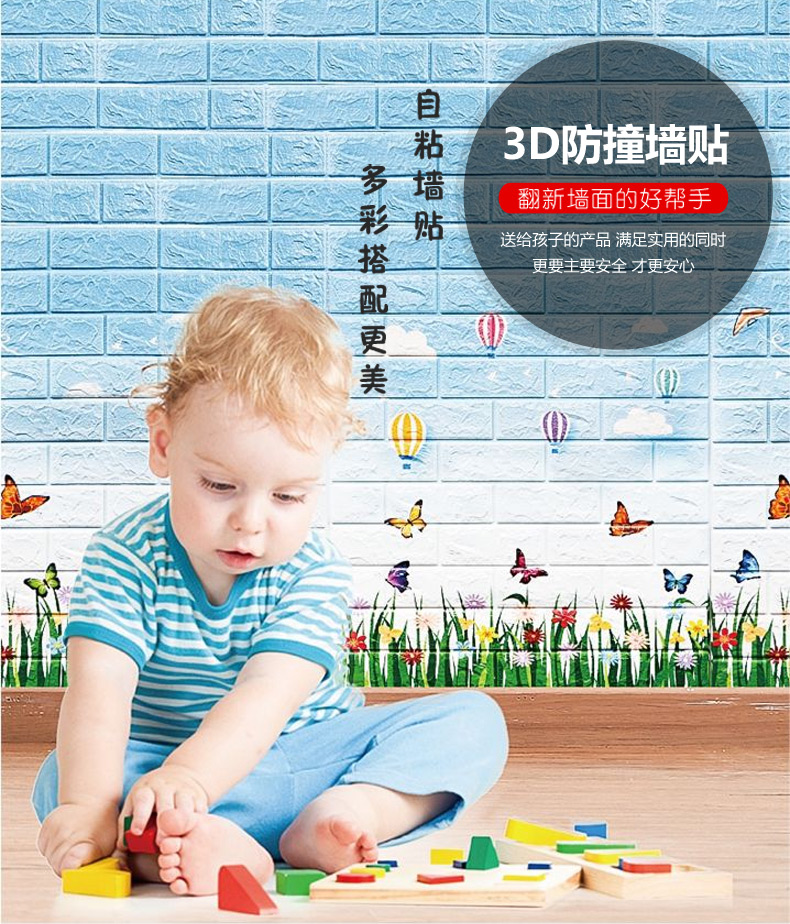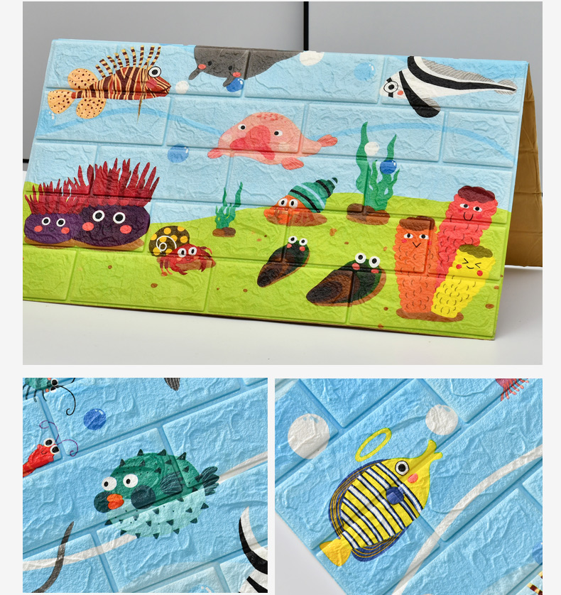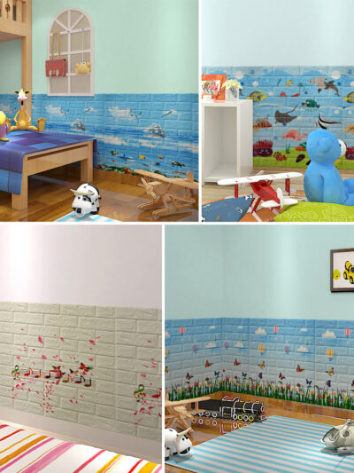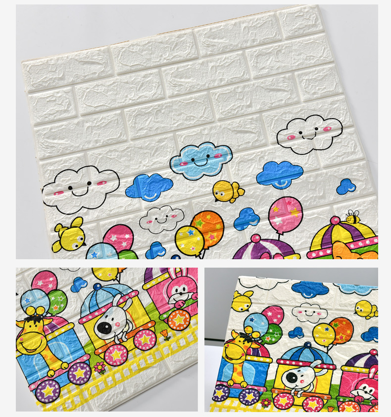 Giấy Dán Tường Phòng Trẻ Em Tự Dán Hoạt Hình Cậu Bé Hoạt Hình Chủ Đề Túi Mềm Xốp Chống Thấm Nước Decal Dán Tường Ba Chiều 3D Nhà Giấy Dán Tường