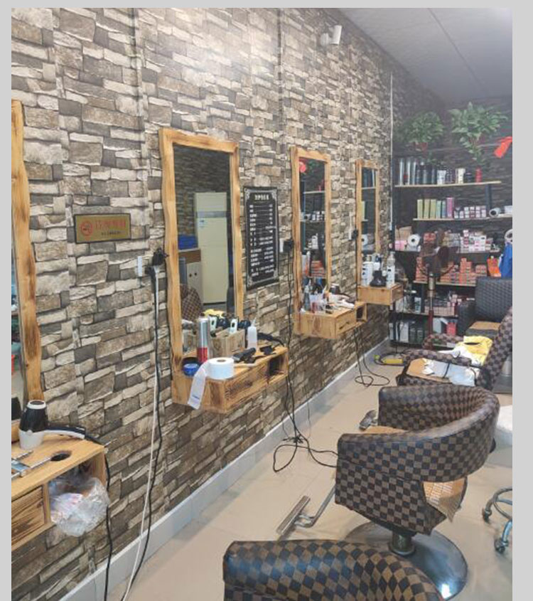 Giấy dán tường tiệm cắt tóc trang trí cửa hàng giấy dán tường tiệm tóc tự dính lưới chống thấm nước và chống ẩm tường đỏ tiệm làm tóc 3d ba chiều thương mại