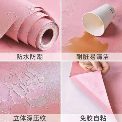 Giấy Dán Tường Tự Dán Phòng Khách Phòng Ngủ Ấm Áp Dán Tường Dày Phòng Ngủ Cho Thuê Phòng Bé Gái Trái Tim Lưới Đỏ Nhà Máy Dán