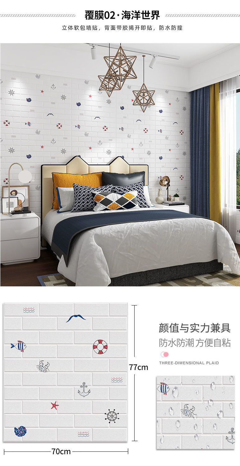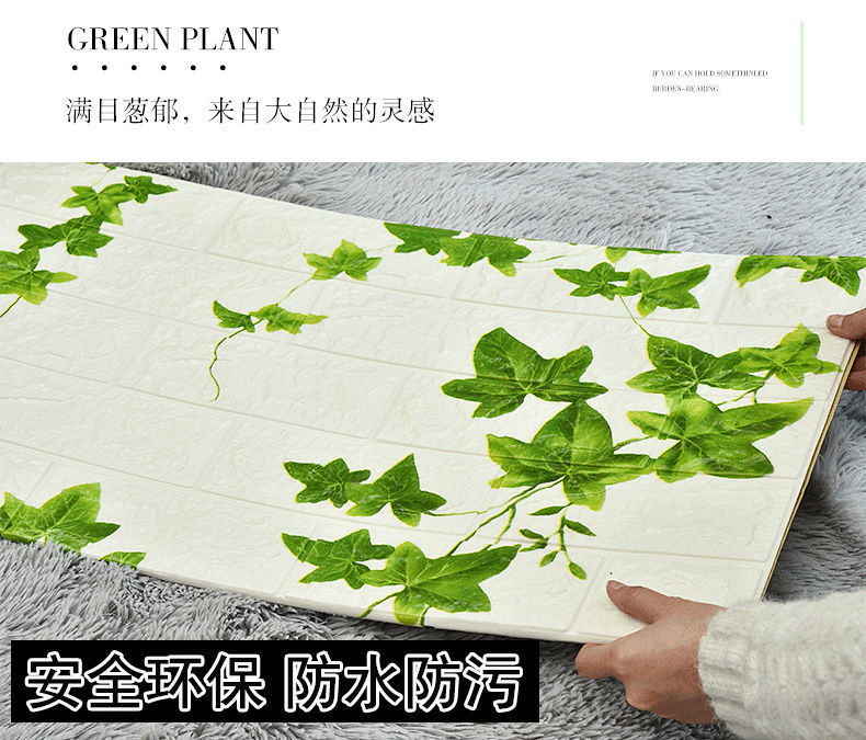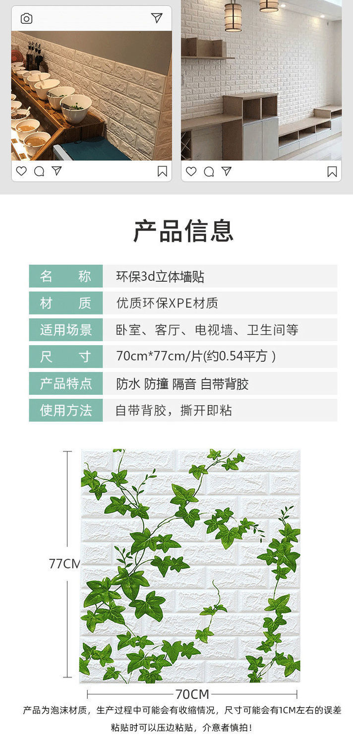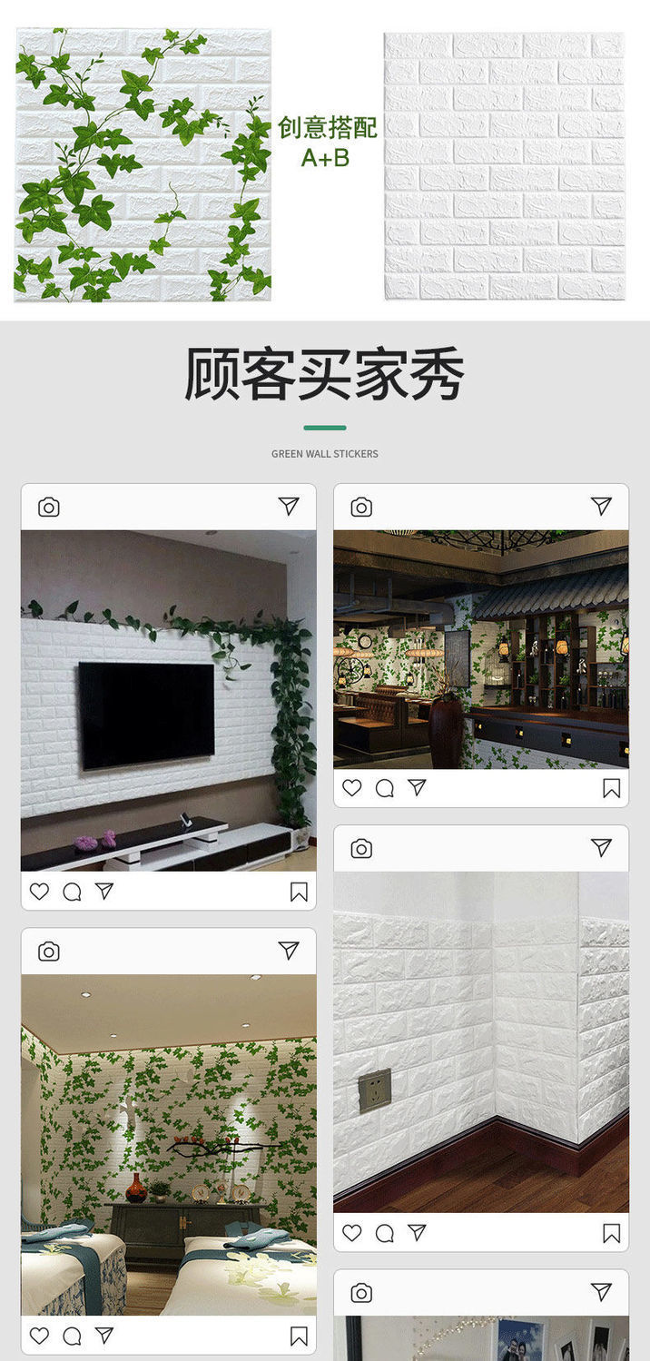 Giấy Dán Tường Tự Dán Phòng Ngủ 3D Ba Chiều Decal Dán Tường Phòng Khách Nhà Hàng Chống Nước Tường Gạch Trang Trí Dây Thường Xuân Miếng Dán Bán Buôn