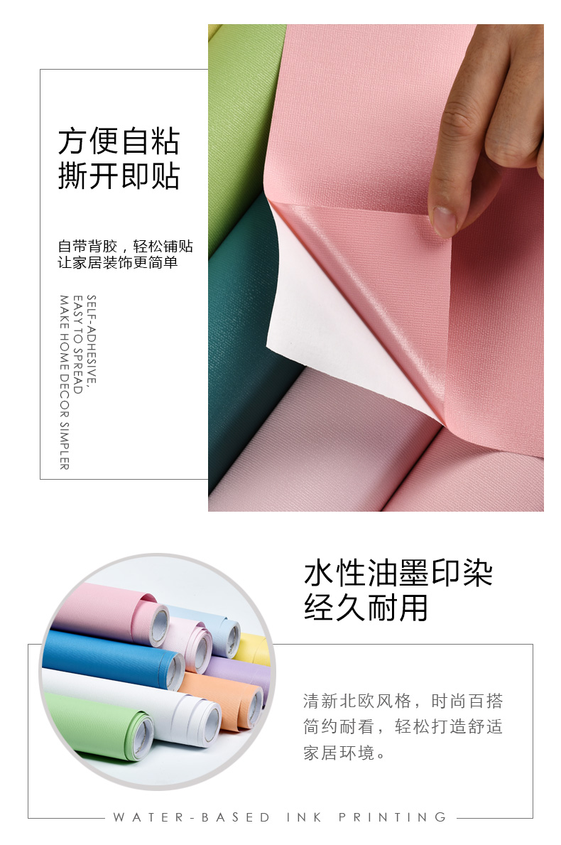 Giấy dán tường tự dính bán buôn chống thấm nước và chống ẩm có thể cọ rửa ký túc xá dán tường phòng ngủ ấm áp tủ quần áo máy tính để bàn dán