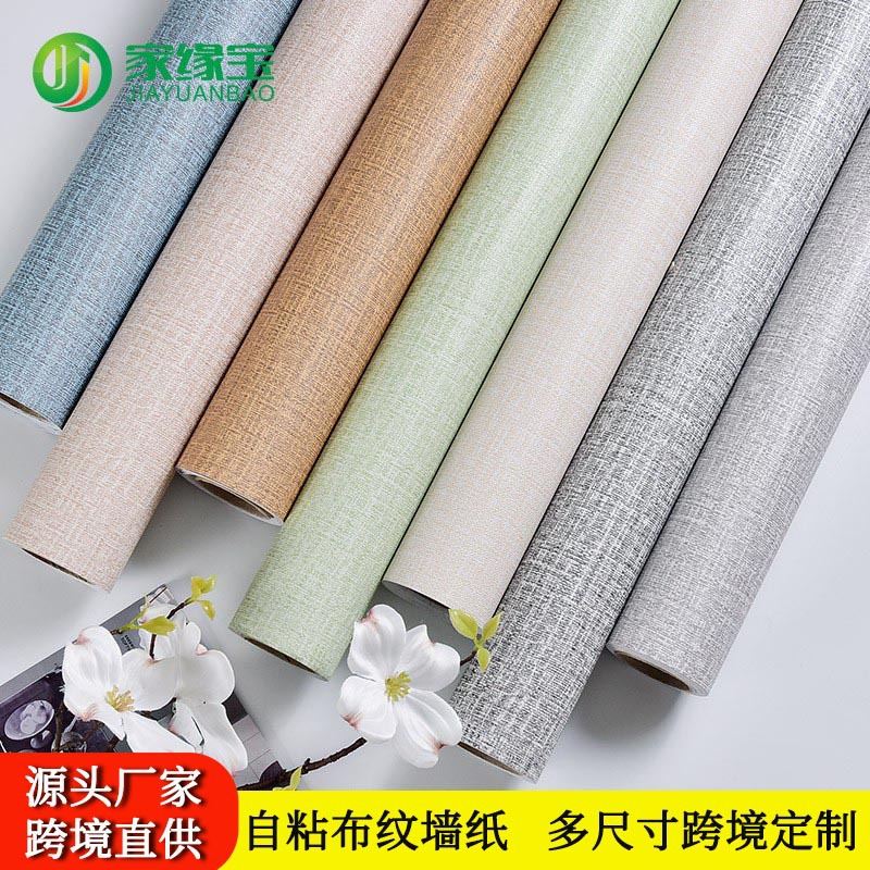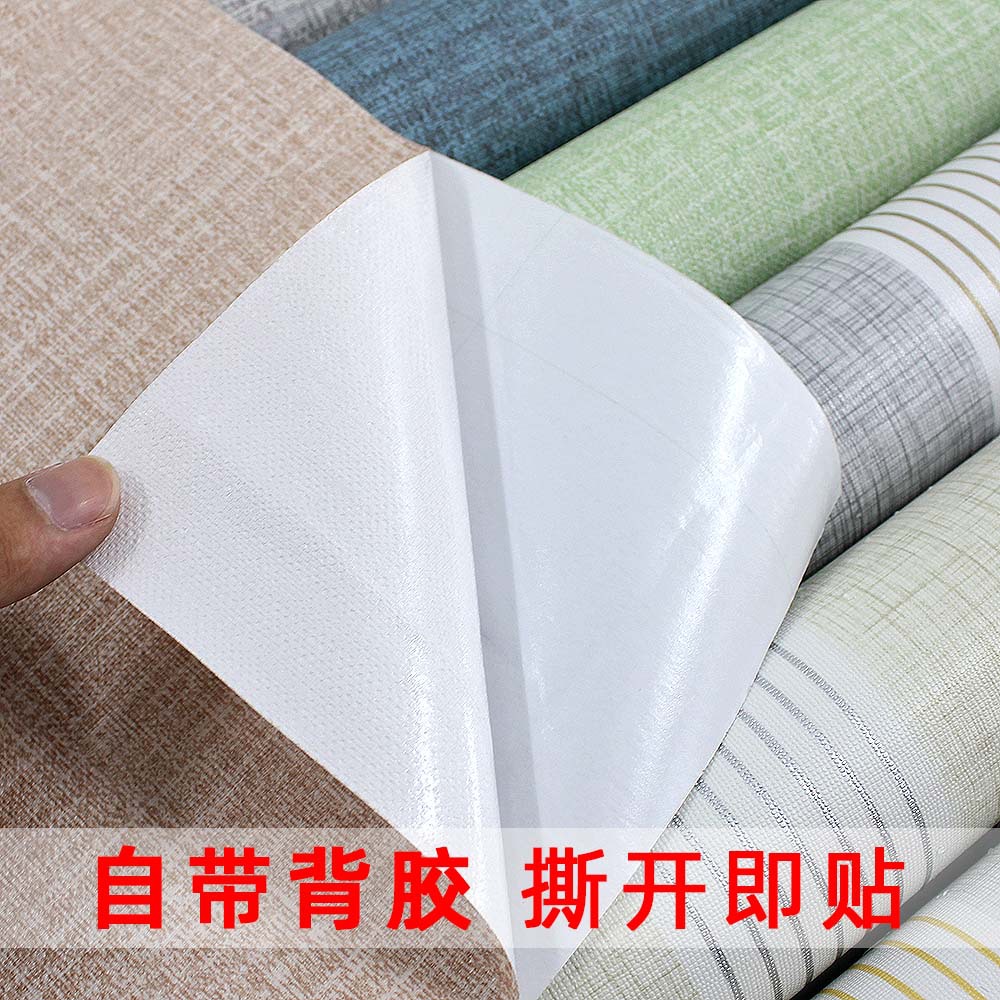 Giấy dán tường tự dính bán buôn đồng màu vải hoa văn PVC chống thấm nước khách sạn phòng khách ký túc xá khách sạn Decal dán tường Giấy dán tường miếng dán trang trí