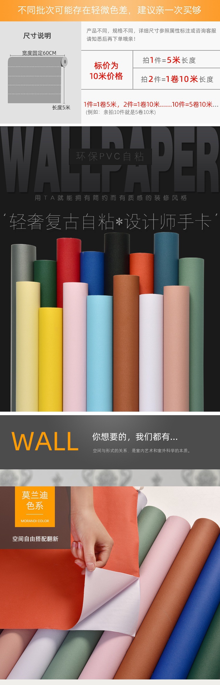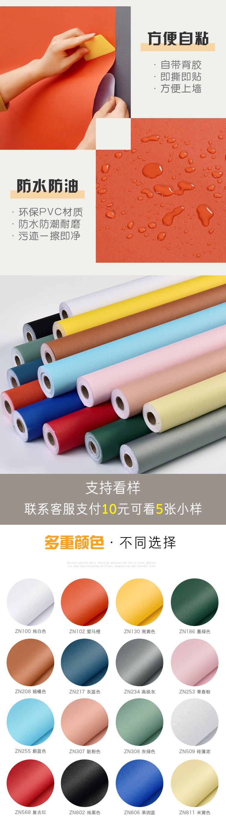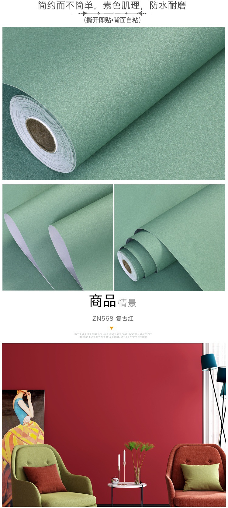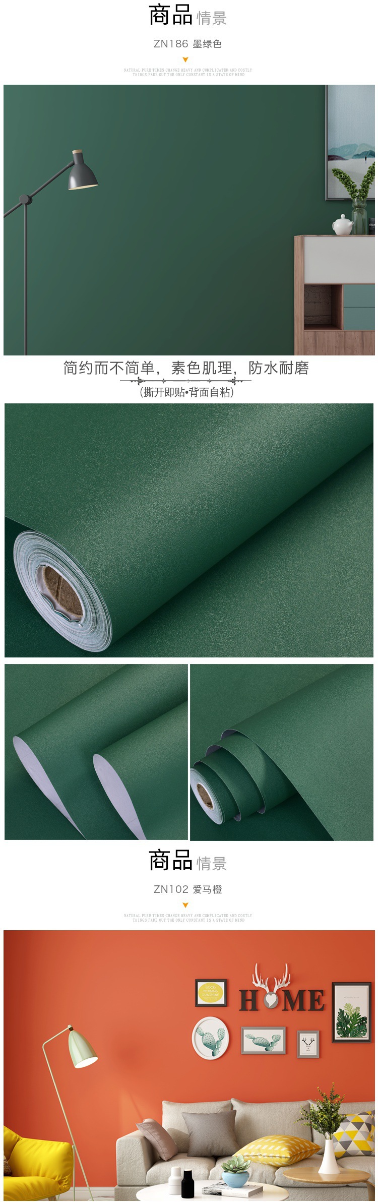Giấy Dán Tường Tự Dính Bán Buôn Màu Xanh Đậm Tường Nhà Phòng Ngủ Ấm Retro Màu Dán Ký Túc Xá Dày Một Mảnh Bán Buôn