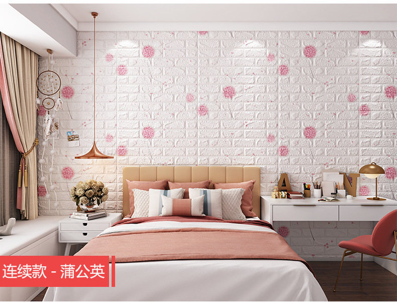 Giấy dán tường tự dính phòng ngủ ấm áp 3d dán tường ba chiều giấy dán tường nền tường xốp gạch trang trí miếng dán chống thấm nước và chống ẩm