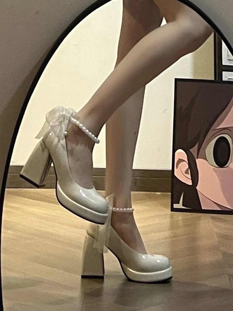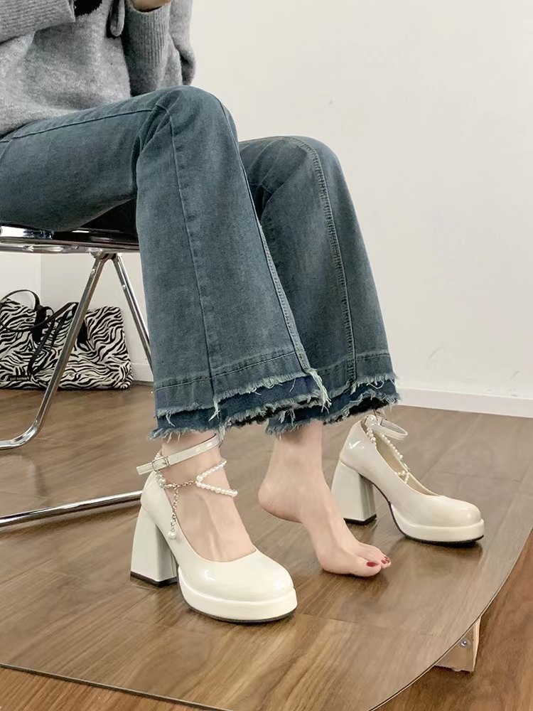 Giày đế đơn nữ siêu cao gót mùa xuân và mùa thu 2023 mới đế dày ngọc trai Mary Jane giày da cỡ lớn giày nhỏ