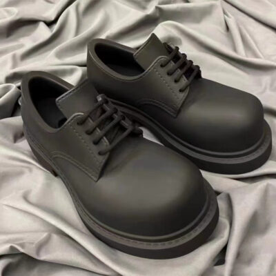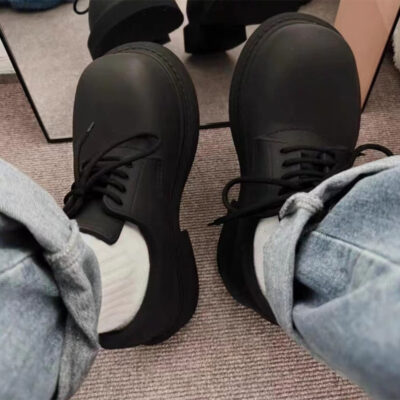 Giày Derby cùng kiểu cho nam và nữ 2023 giày da nhỏ màu đen buộc dây mới kiểu Anh giày đơn nữ gót tròn mũi tròn dày