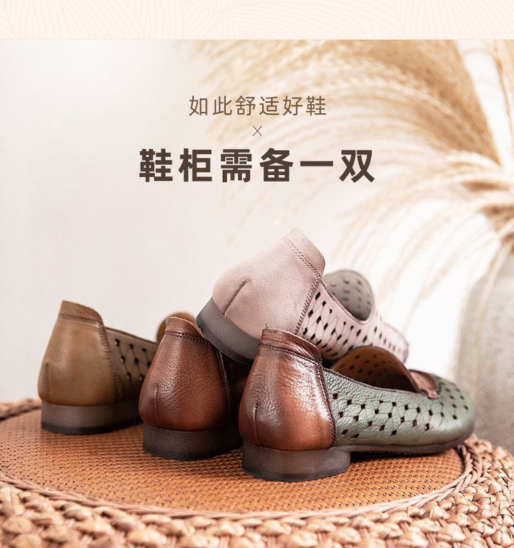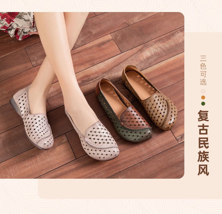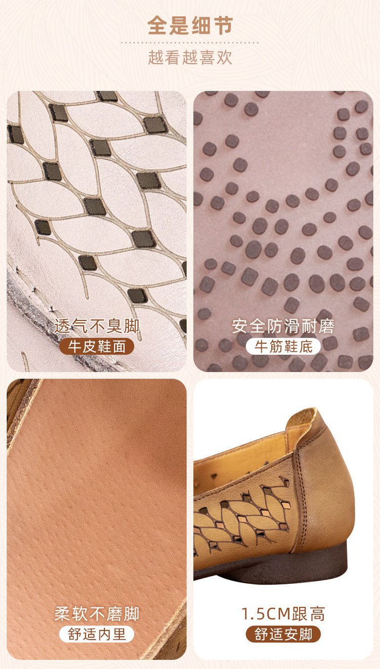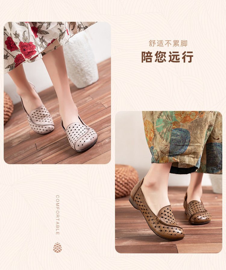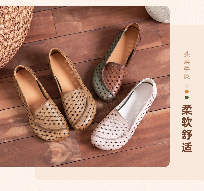 Giày doudou phong cách cổ điển làm bằng tay, giày nữ đế mềm, mũi tròn, giày đơn thoải mái cho người trung niên và người cao tuổi, giày da một mảnh thay mặt cho