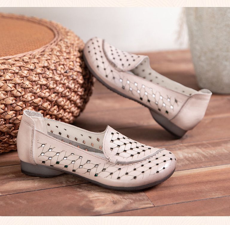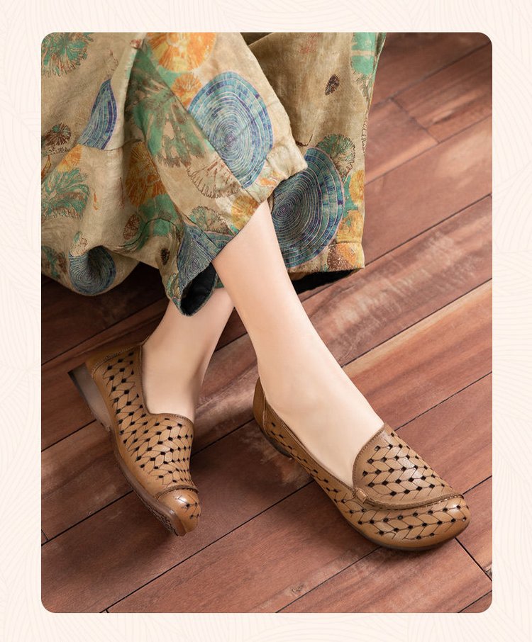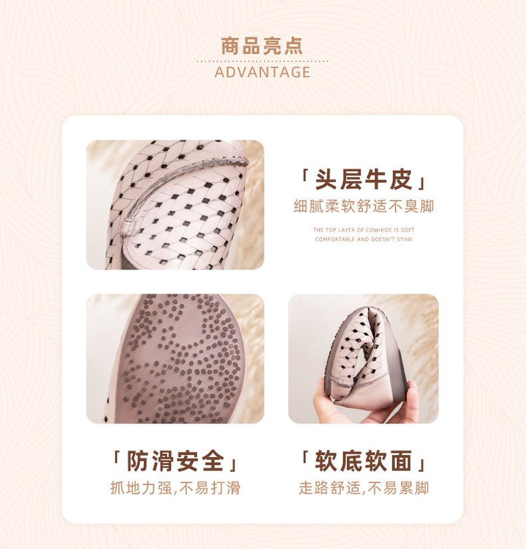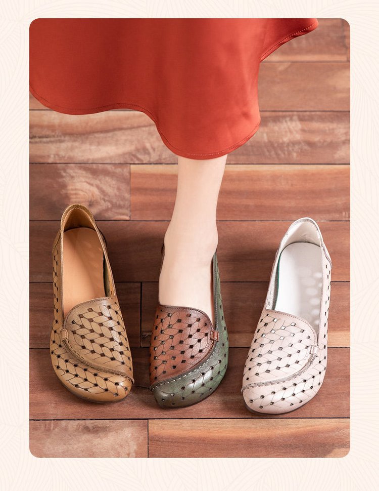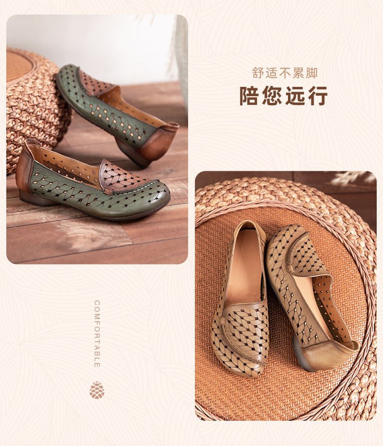 Giày doudou phong cách cổ điển làm bằng tay, giày nữ đế mềm, mũi tròn, giày đơn thoải mái cho người trung niên và người cao tuổi, giày da một mảnh thay mặt cho