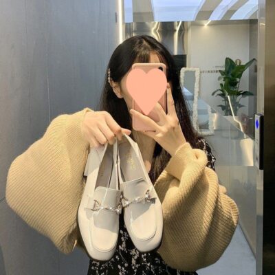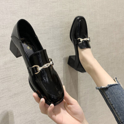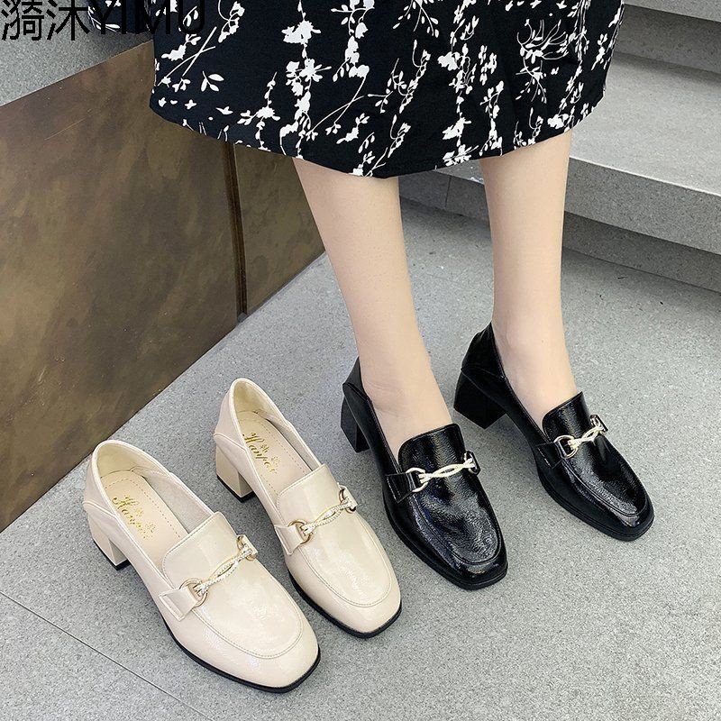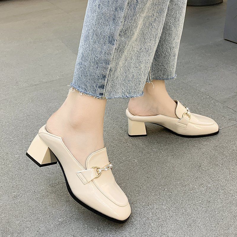 Giày hai quai giày nữ mùa xuân hè mới 2023 giày da nhỏ gót nhọn phong cách Anh Giày cao gót lười thời trang phù hợp với mọi lứa tuổi