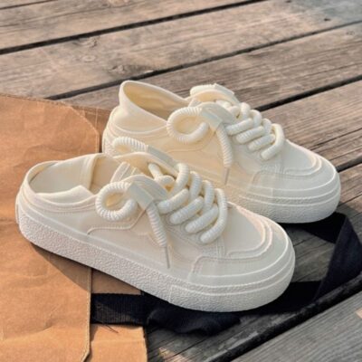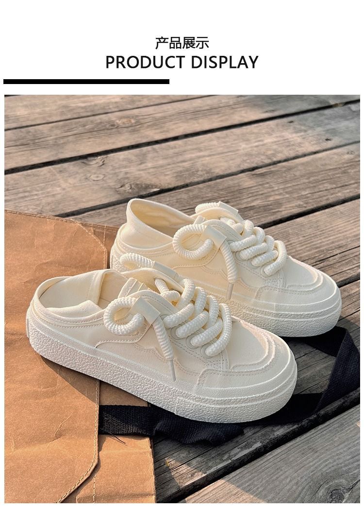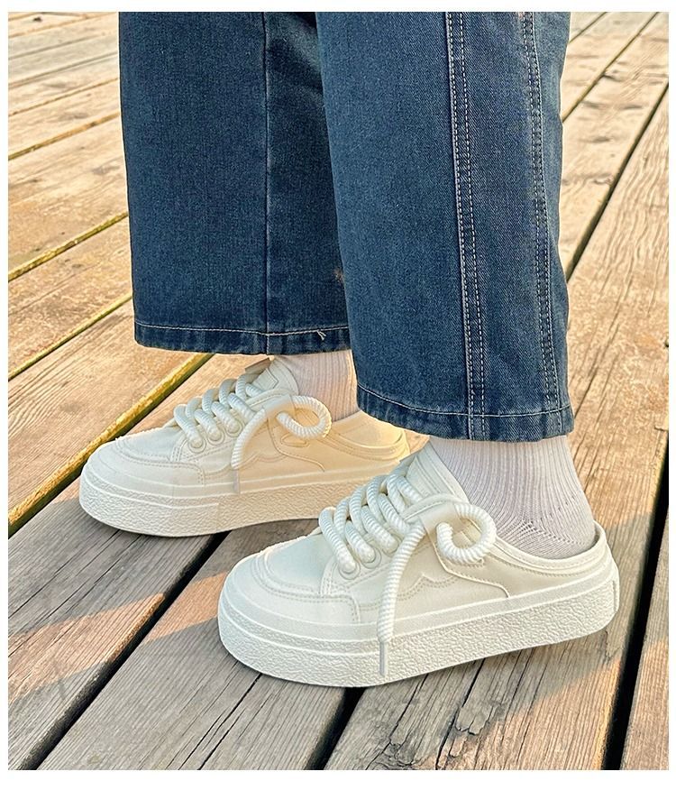 Giày lười 1 bàn đạp 2 giày lười nhỏ màu trắng giày nữ mùa hè 2023 mới thích hợp ban đầu giày thể thao đế dày