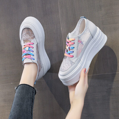 Giày lưới tăng chiều cao bên trong cho nữ mùa hè 2023 phiên bản Hàn Quốc mới màu đỏ lưới thoáng khí đế dày giày cũ đế dày ins