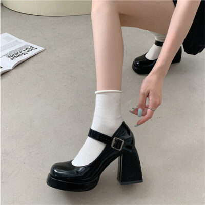 Giày Mary Jane đế dày chống nước đế dày tăng hot girl Nhật Bản da bóng màu đen cá tính Giày cao gót da nhỏ kiểu Pháp
