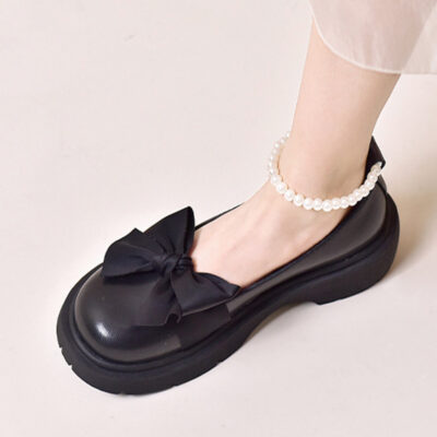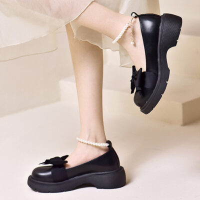 Giày Mary Jane nữ nơ ngọc trai giày đơn nữ đế dày phong cách cổ tích giày da nhỏ giày công chúa Pháp