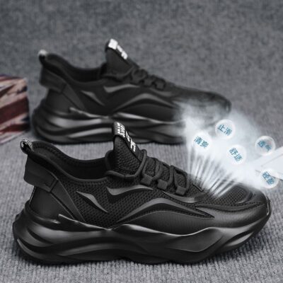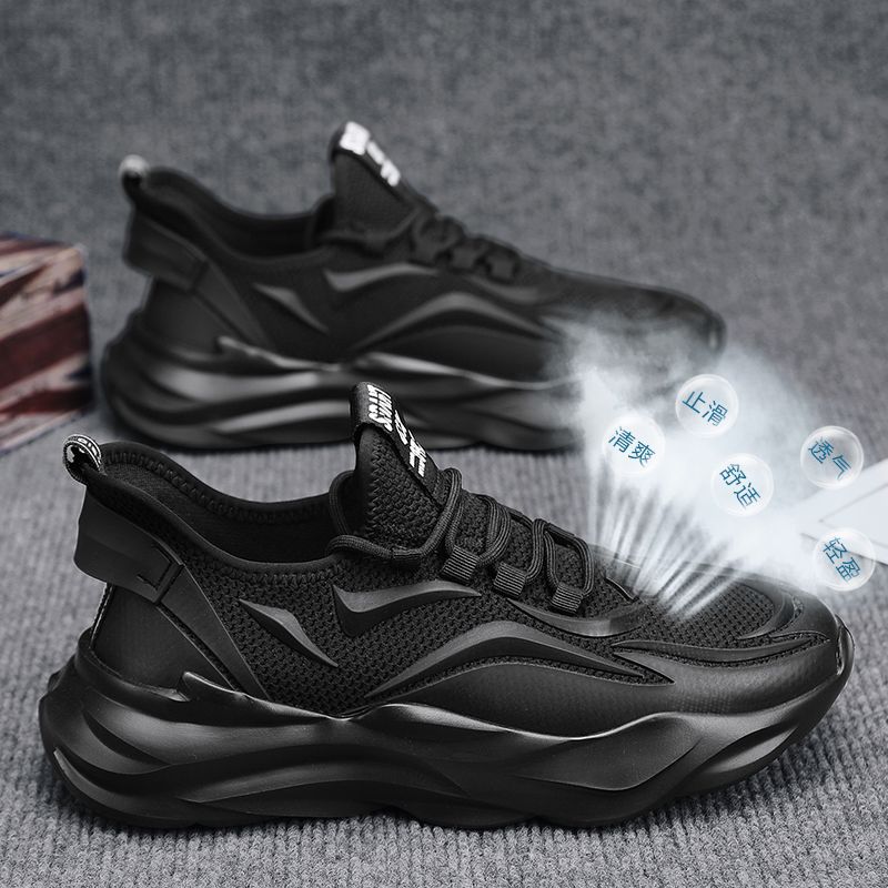 Giày Nam 2023 Mùa Hè Mới Thoáng Khí Đen Dày-Đế Tăng Cao Bố Giày Nam Bay Dệt Lưới giày Thể Thao