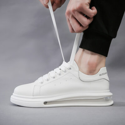 Giày nam da đế dày mới Giày McQueen nhỏ màu trắng thoáng khí cho nam giày ván lót giày đế cổ điển giày thường tăng chiều cao