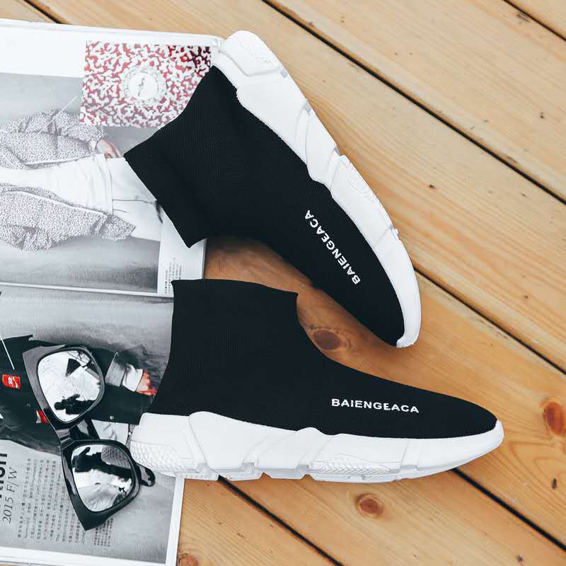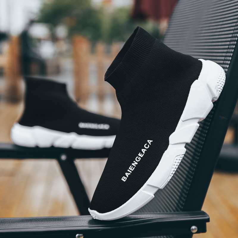 Giày nam kiểu mới, vớ co giãn, giày hợp thời trang nam và nữ, giày tình nhân, giày thể thao dệt bay học sinh đế dày đế cao