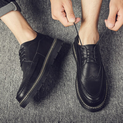 Giày Nam Mùa Hè Mới Rỗng Thoáng Khí Giày Da Công Sở Nam Brogue Khắc Phong Cách Hàn Quốc Giày Da Nam Anh