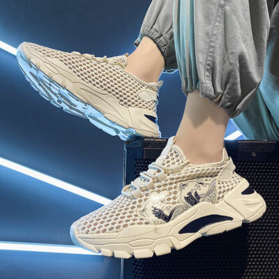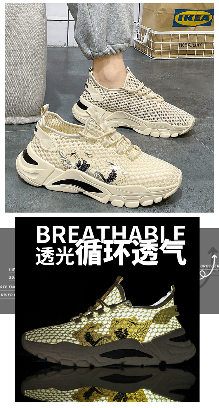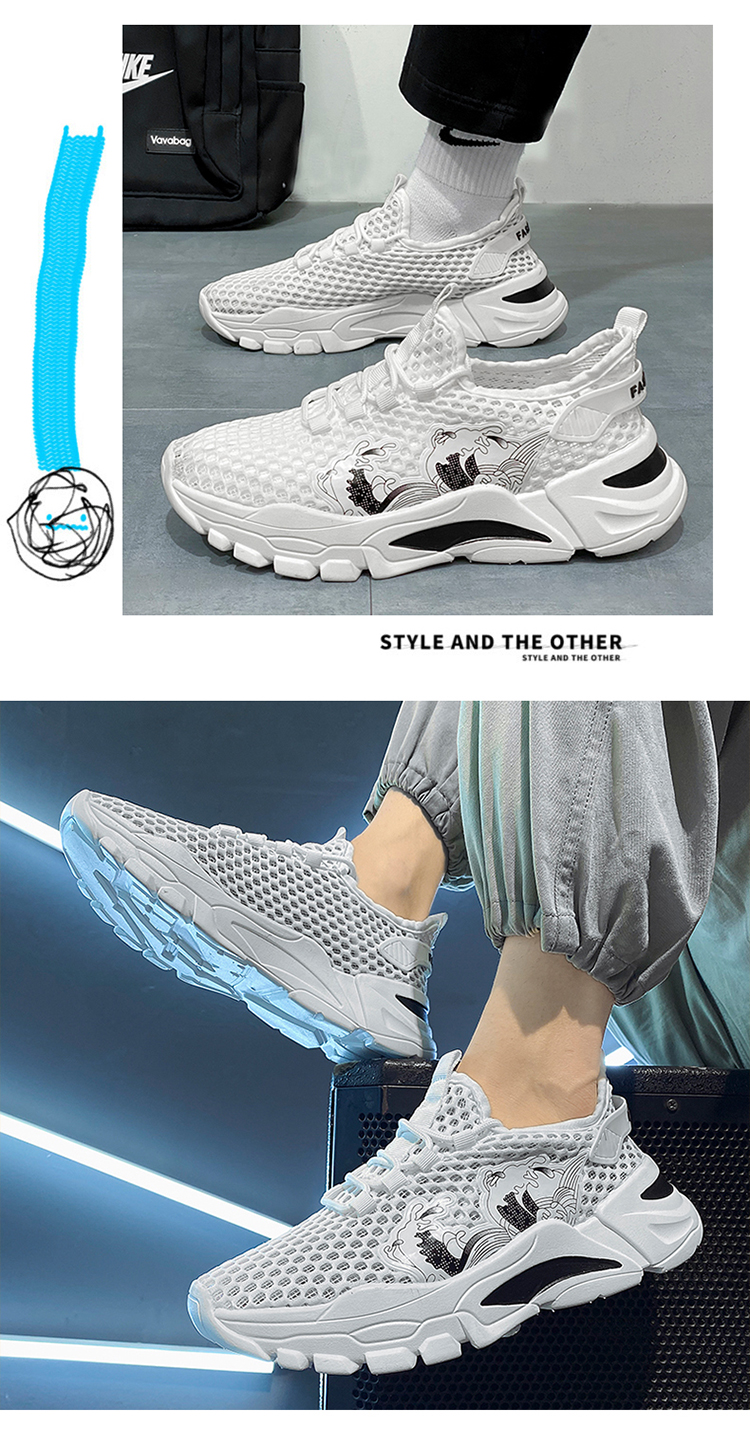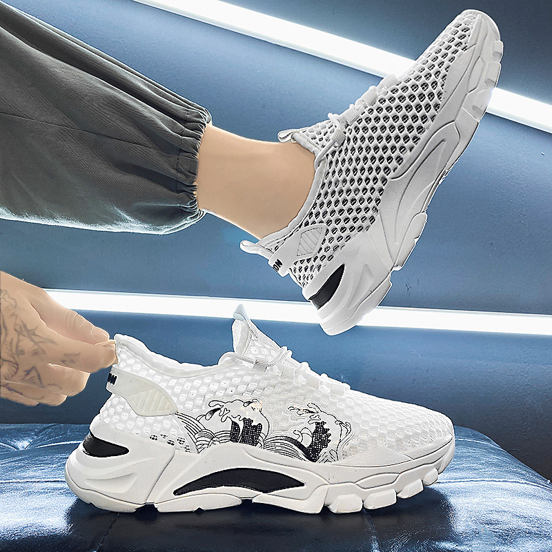 Giày Nam Mùa Hè Thoáng Khí Lưới Mỏng Rỗng Thể Thao Lưới Chống Trơn Giày Lưới Nhỏ Màu Trắng Giày Mùa Hè Nhẹ Hợp Thời Trang