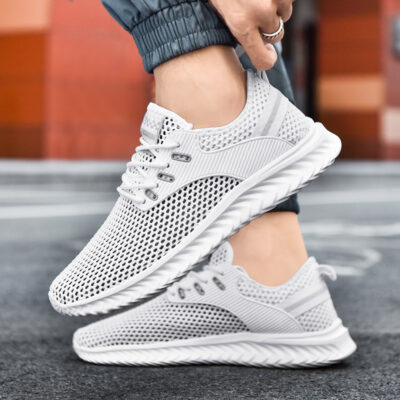 Giày nam xuyên viền thoáng khí size lớn đen tuyền lưới mỏng khử mùi lưới rỗng giày lưới thể thao giản dị giày nam thời trang