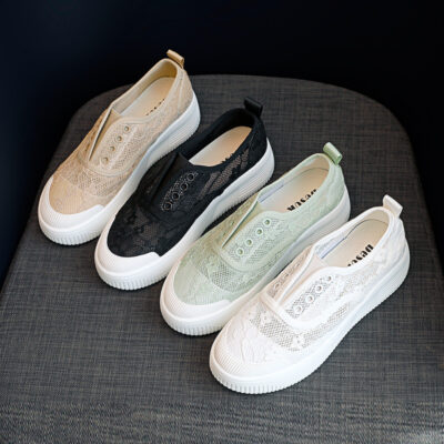 Giày ngư dân bề mặt lưới thoáng khí cho nữ mùa hè 2023 mới đế phẳng nhỏ có mùi thơm phù hợp với tất cả Giày nữ sinh viên đế mềm đế trượt