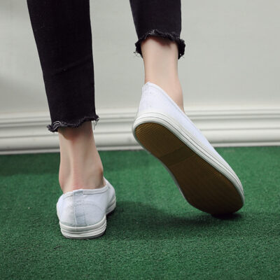 Giày nhỏ màu trắng của phụ nữ mùa xuân và mùa thu làm việc thắt lưng đàn hồi giày nữ giày y tá phẳng giày chống trượt giày nữ thoải mái giày tập khiêu vũ