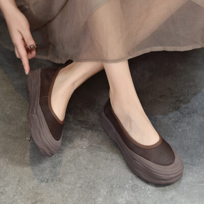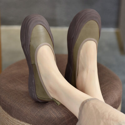 Giày nữ da nghệ thuật Mori giày nữ miệng nông giày đơn mũi tròn mùa xuân thu 2023 lớp đầu da bò bề mặt trơn giày cổ thấp phù hợp với mọi lứa tuổi