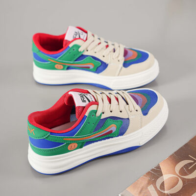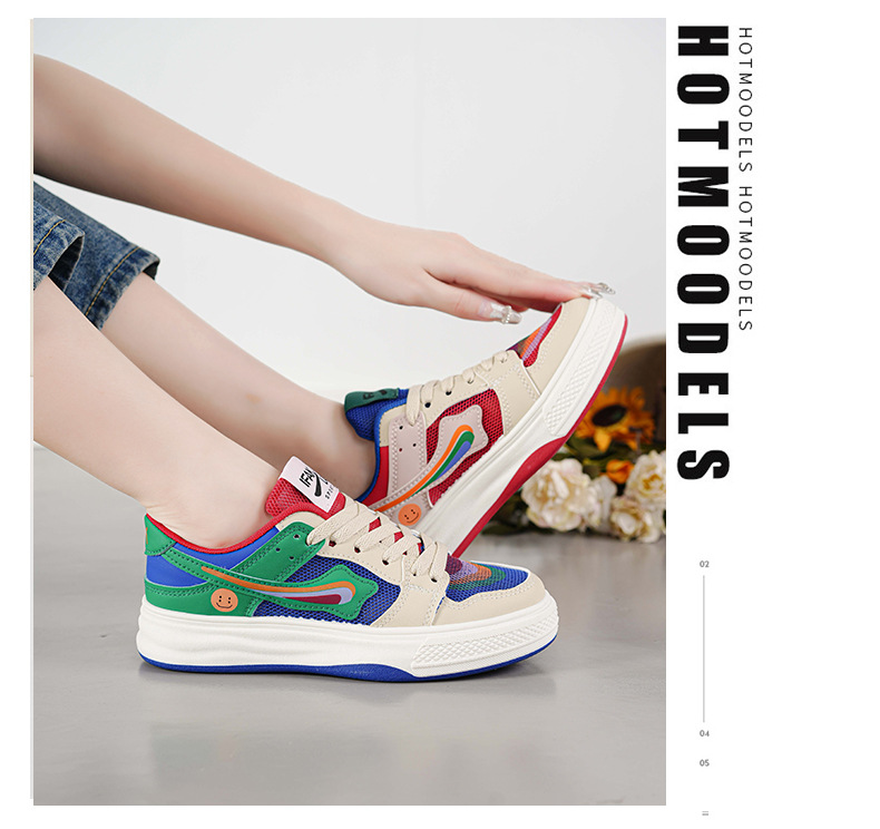 Giày nữ lưới mùa hè thoáng khí phối màu giày thể thao 2023 mới giày thường ngày sinh viên phù hợp xu hướng giày trắng thời trang