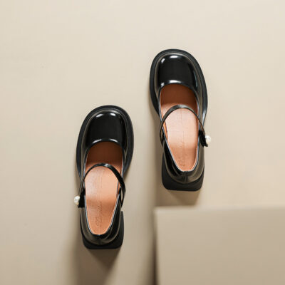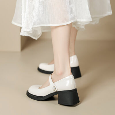 Giày Nữ Mary Jane Mùa Xuân 2023 Mới Retro Mũi Tròn Dẹt Gót Dày Giày Da Pháp Cao Gót Đơn giày Nữ