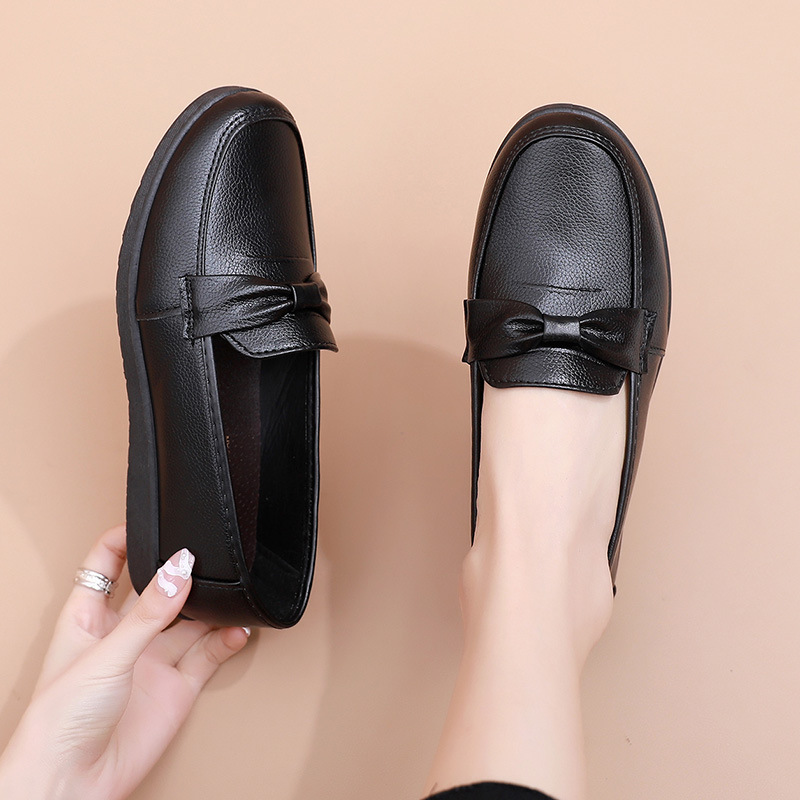 Giày nữ mùa xuân và mùa thu giày đế mềm chống trượt giày thoải mái chống trượt cho phụ nữ trung niên và cao tuổi giày da công sở màu đen trung niên