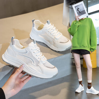 Giày nữ size lớn 41-43 giày bố giày thể thao nữ chạy bộ nhỏ màu trắng giày lưới nữ mùa xuân hè 2023 giày thường hợp thời trang
