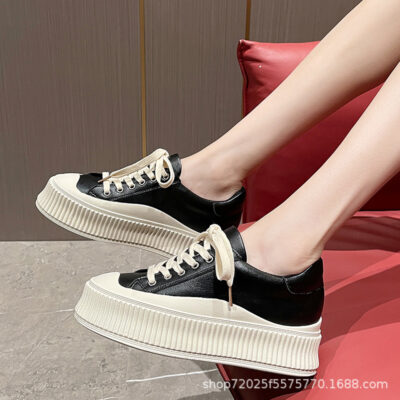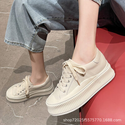 Giày nữ tăng chiều cao bên trong mùa thu 2023 thời trang mới giày muffin mũi tròn đế dày phiên bản Hàn Quốc giày bánh quy da nữ