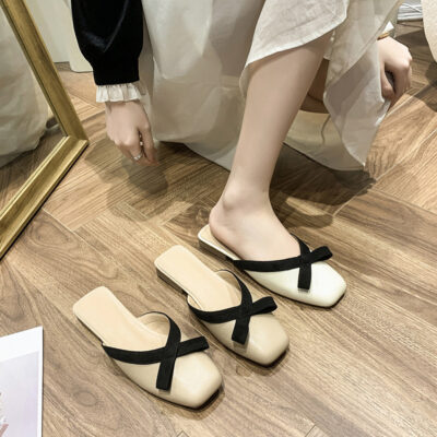 Giày nửa dép nửa đầu Bao Đầu phong cách Pháp mùa hè 2023 mùa xuân mới Giày đơn Muller đế dày lười biếng không gót