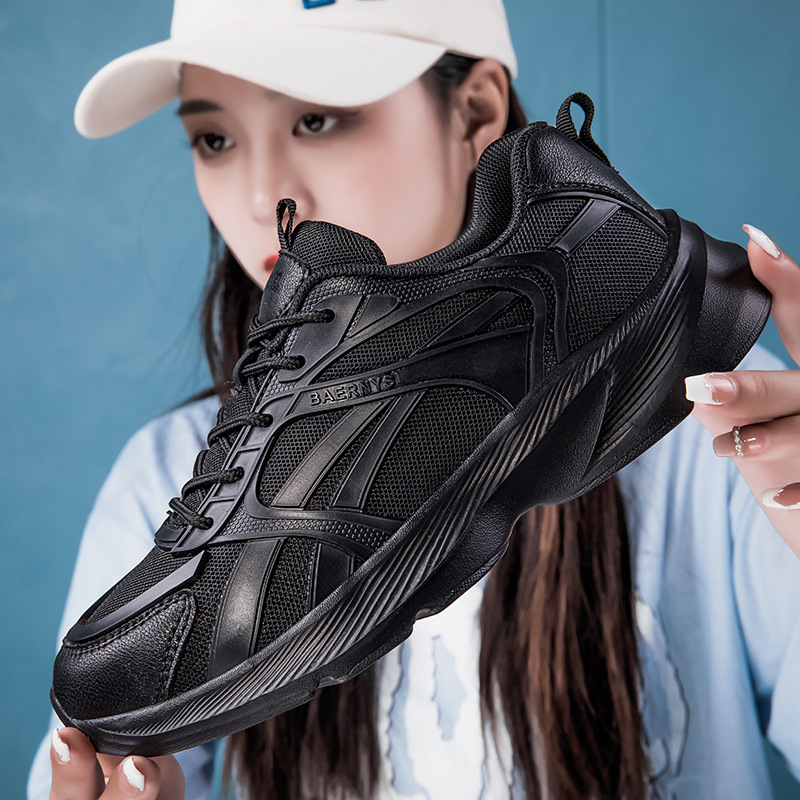 Giày thể thao màu đen tuyền mùa hè nữ lưới thoáng khí phần mỏng đế mềm nhẹ toàn màu đen giày đi làm không mỏi lâu