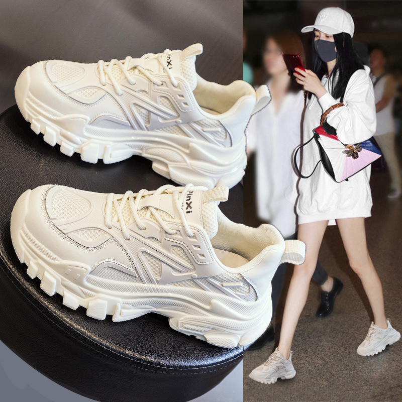 Giày thể thao nữ bề mặt lưới thoáng khí mùa hè 2023 giày chạy bộ mới gót giữa lưới đỏ giày nữ ins giày cũ
