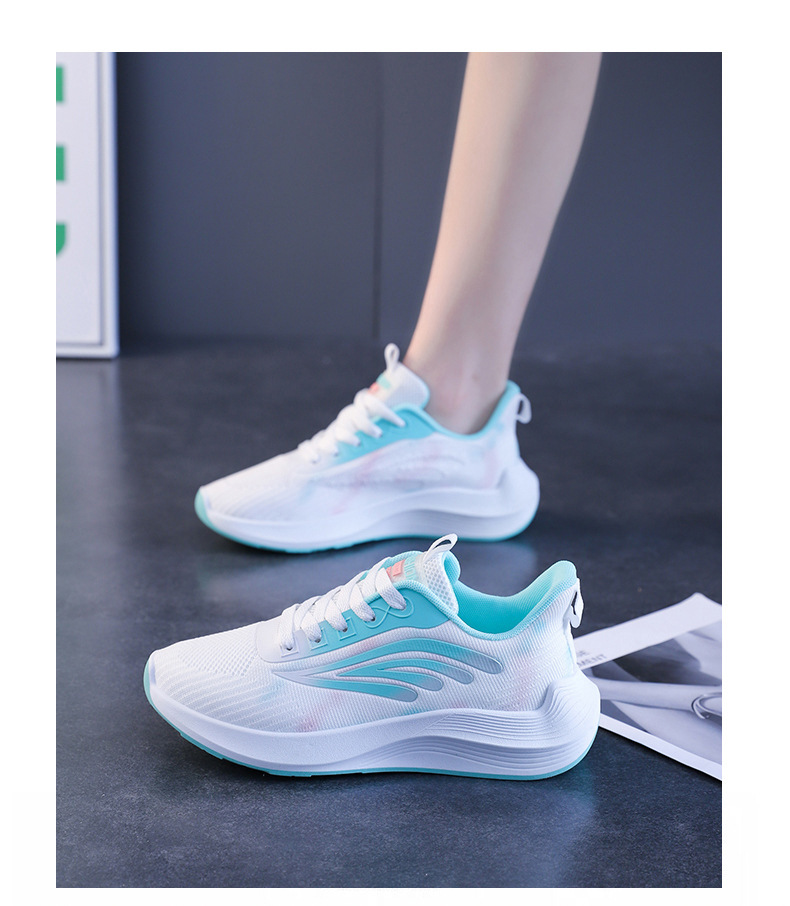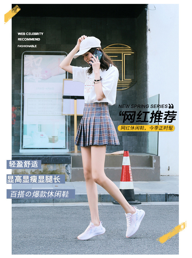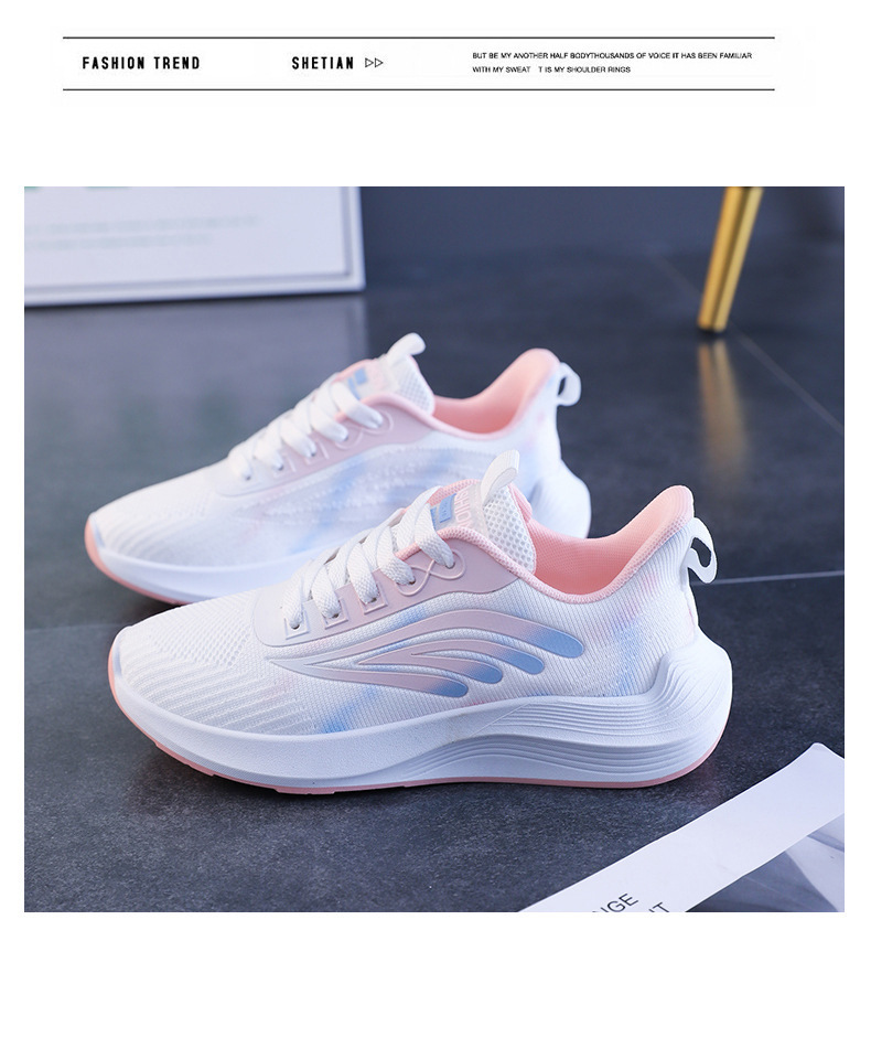 Giày thể thao nữ mùa xuân hè 2023 giày lưới mới giày nữ thoáng khí phong cách bùng nổ giày du lịch bay giày dệt nhỏ màu trắng đế bằng