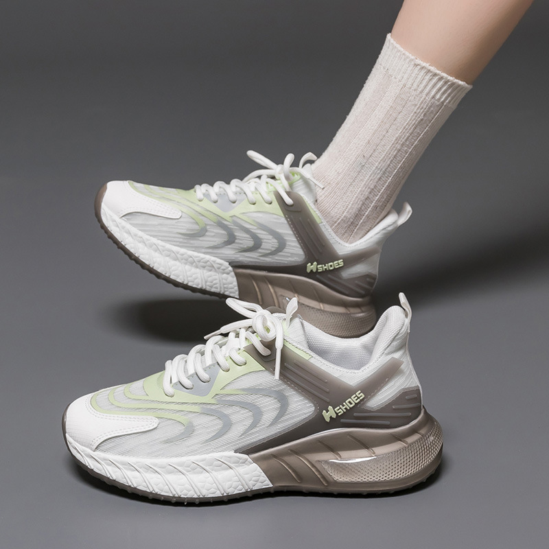 Giày thể thao phối màu phiên bản Hàn Quốc dành cho nam và nữ giày lưới thông thường màu trắng thoáng khí mùa xuân hè giày chạy bộ đế dày phù hợp với mọi lứa tuổi của nữ