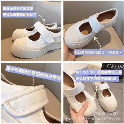 Giày vải Mary Jane cùng phong cách của Zhao Lusi giày nữ mona phù hợp với giày y tá đầu lớn giày trắng đế dày kiểu Pháp mùa hè