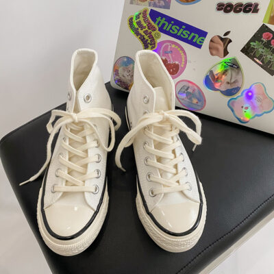 Giày vải màu trắng cổ điển giày nhỏ màu trắng của phụ nữ giày thể thao màu đen giày thể thao sinh viên phiên bản Hàn Quốc giày phẳng đế bằng giày vải
