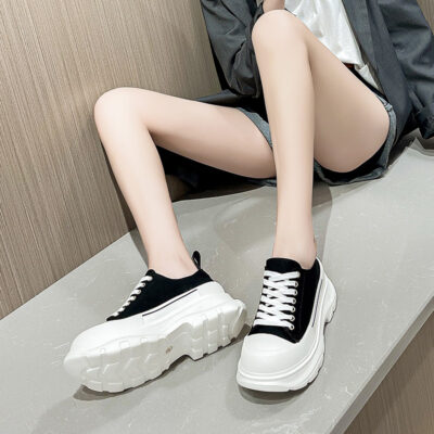 Giày vải vạn năng McQueen’s nữ mùa xuân hè 2023 tăng chiều cao đế dày giày nhỏ màu trắng đôi giày cũ giày thể thao nữ cổ cao