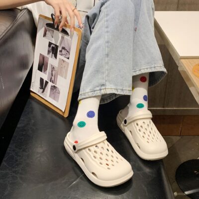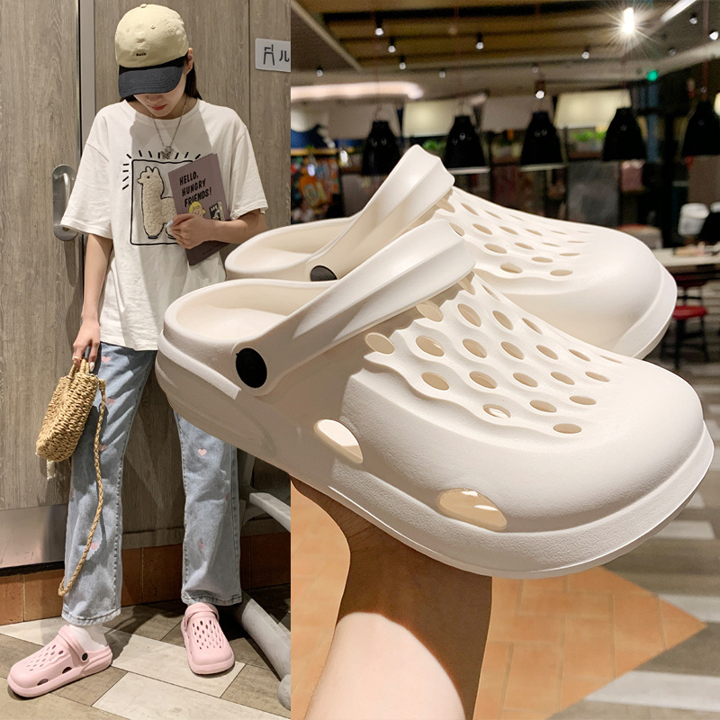 Giày xỏ lỗ dễ thương nữ ins thời trang học sinh mặc trái tim cô gái Bao Đầu bãi biển mùa hè dép và dép đi trong nhà đôi giày nam