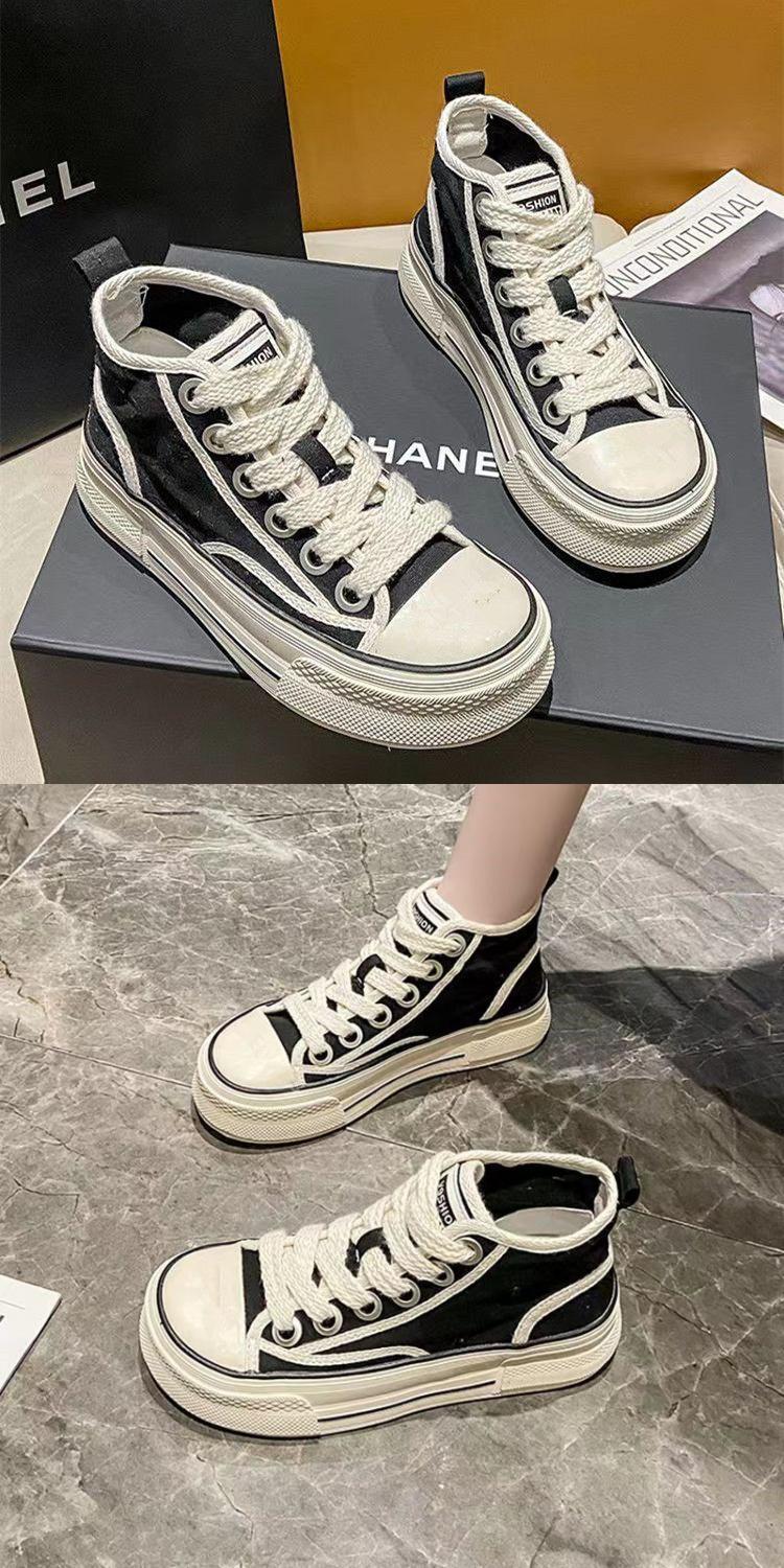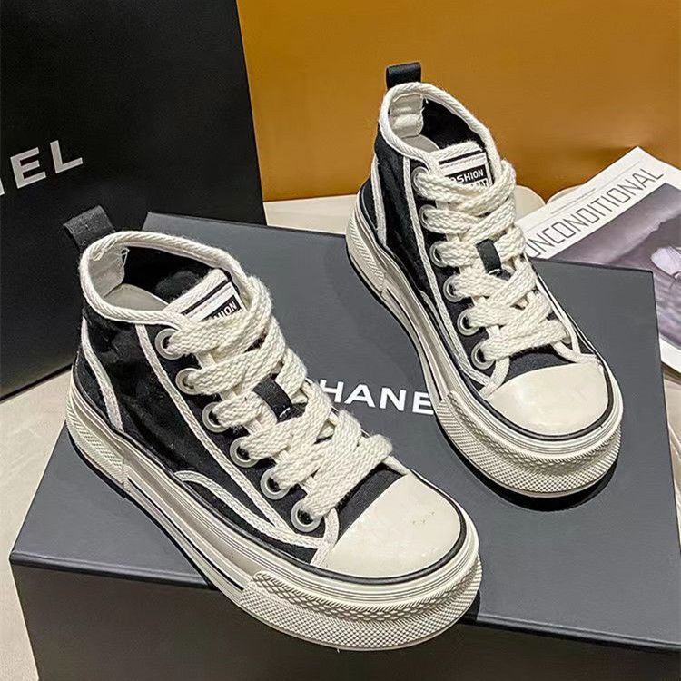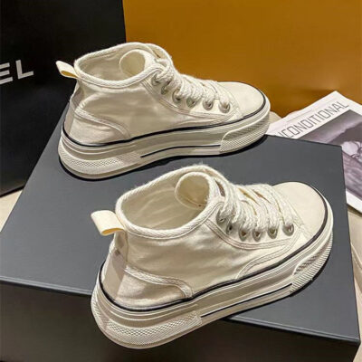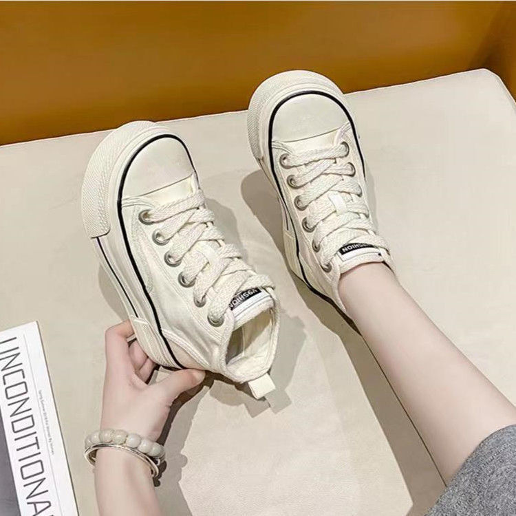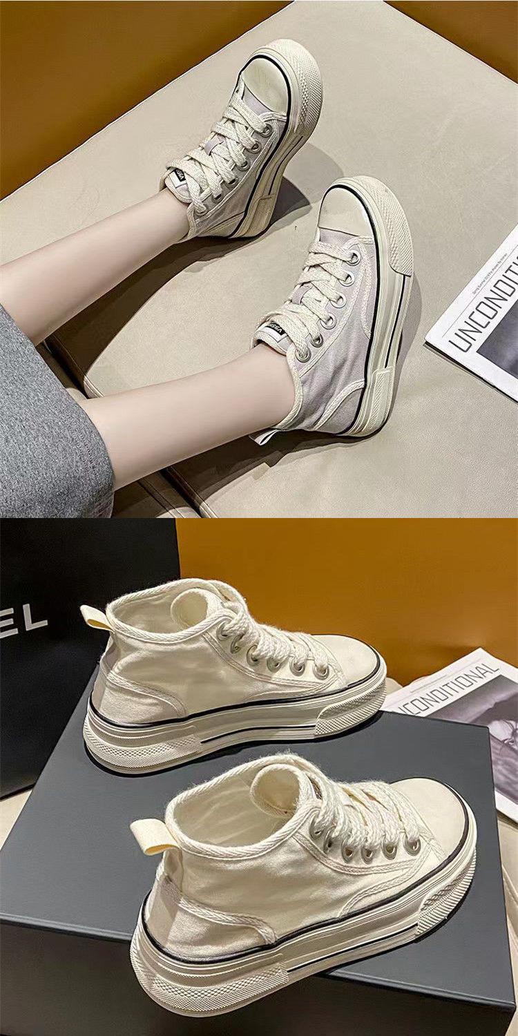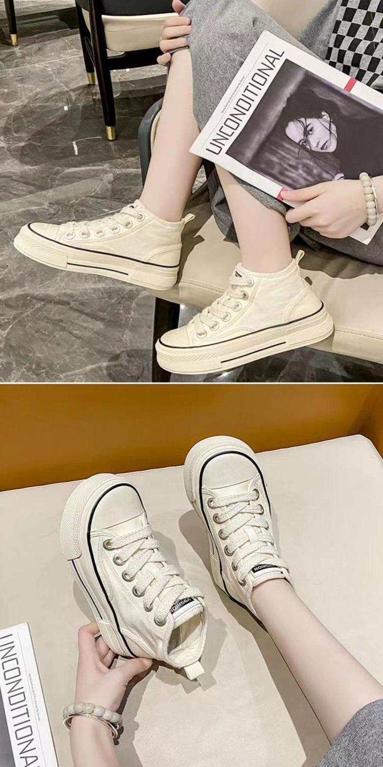 Giày YXBB nữ mùa hè 2023 mỏng cổ cao giày nhỏ màu trắng giày vải đế dày giày nữ phù hợp mọi lứa tuổi