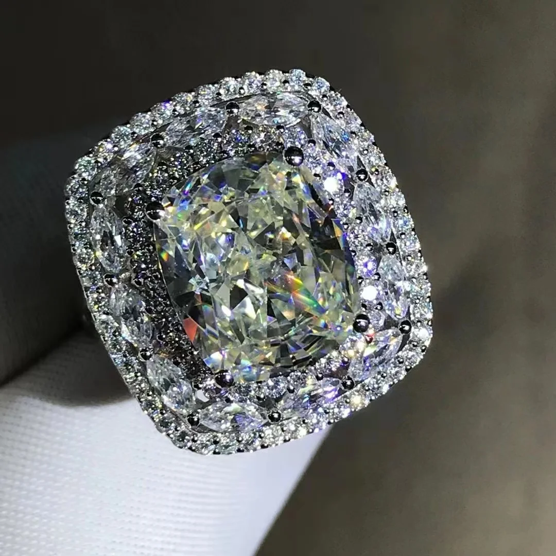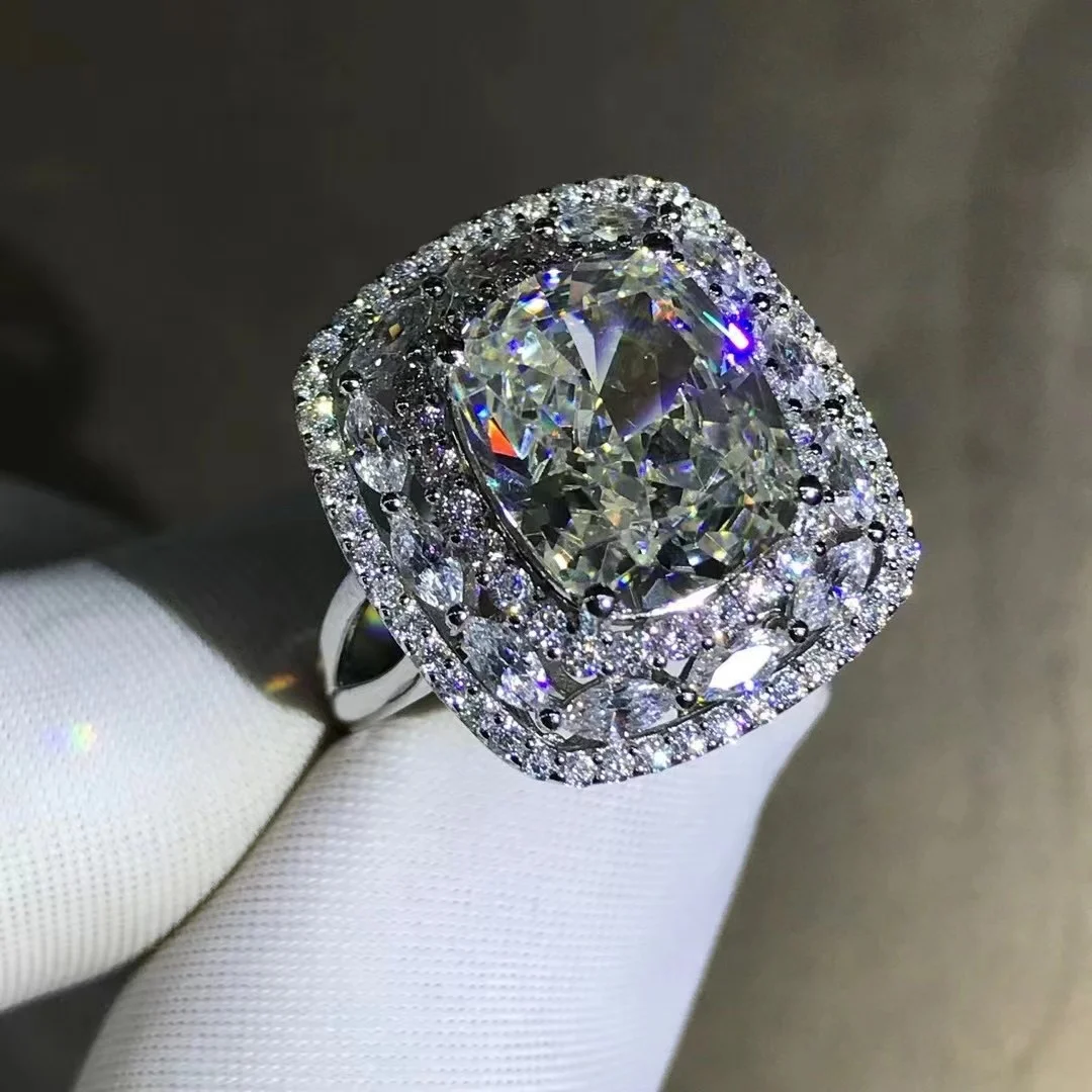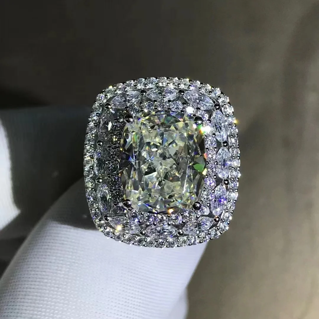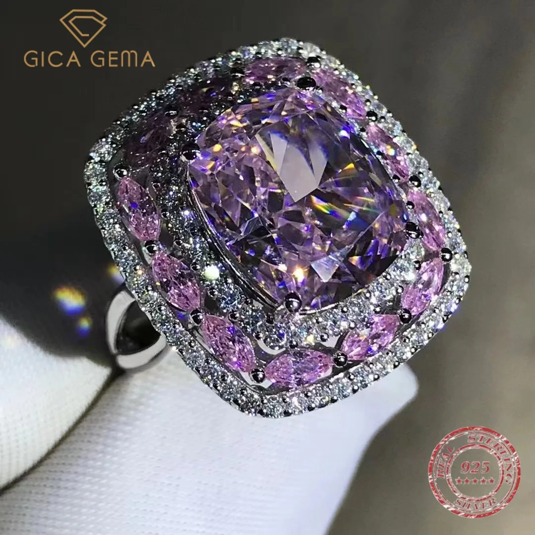 Gica Gema Luxury Real 925 Sterling Silver Ring Cushion Cut 3EX 10CT High Carbon Diamond Gemstone Wedding Engagement Fine Jewelry