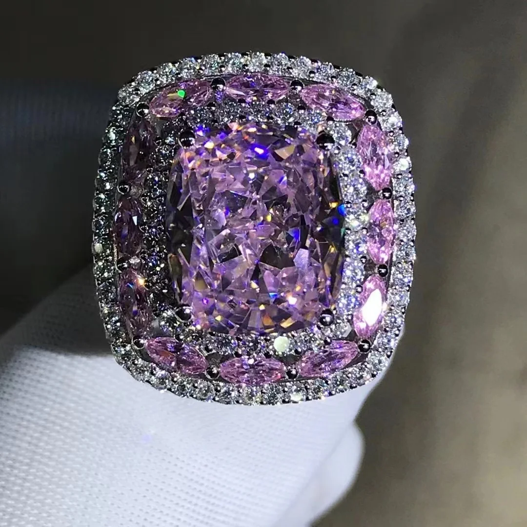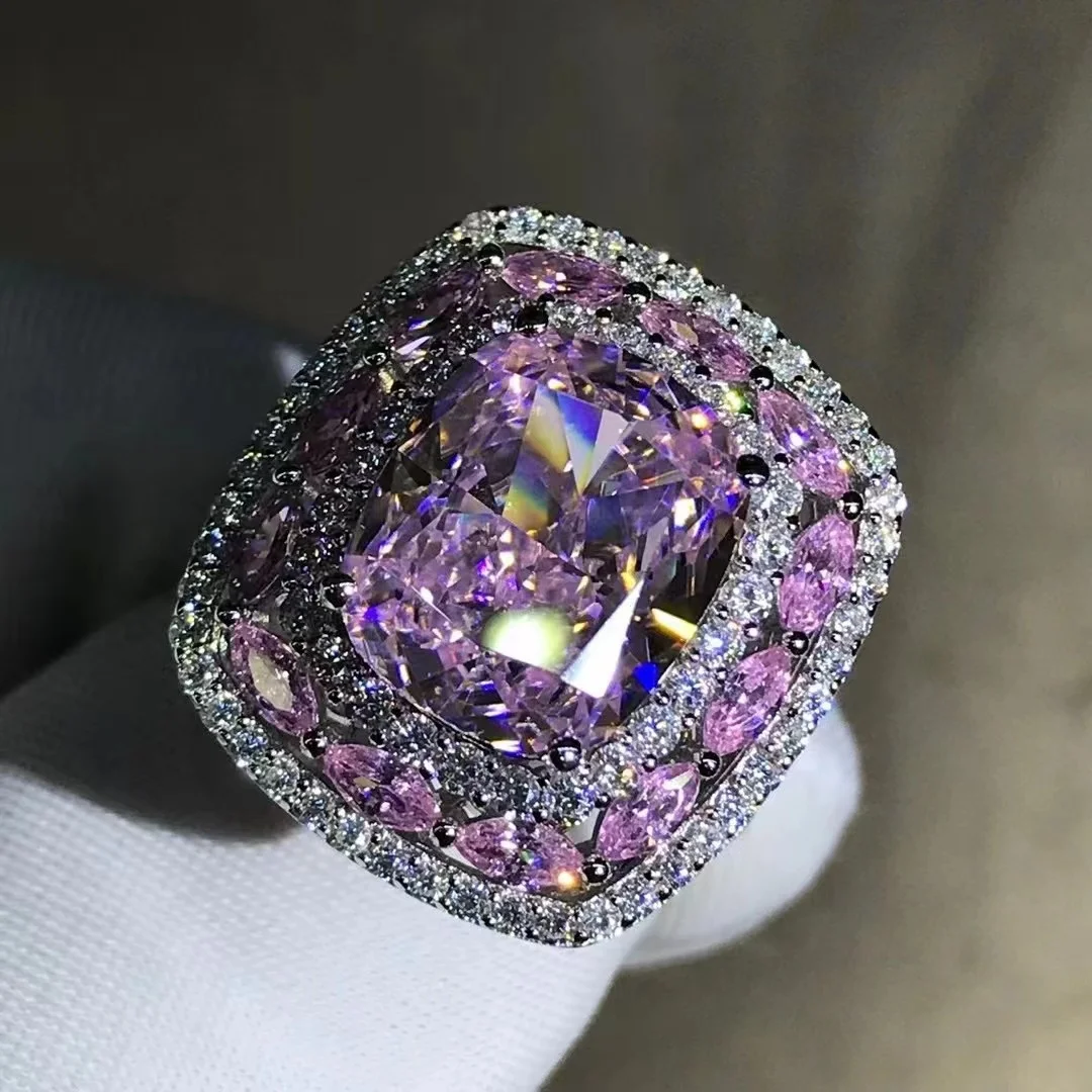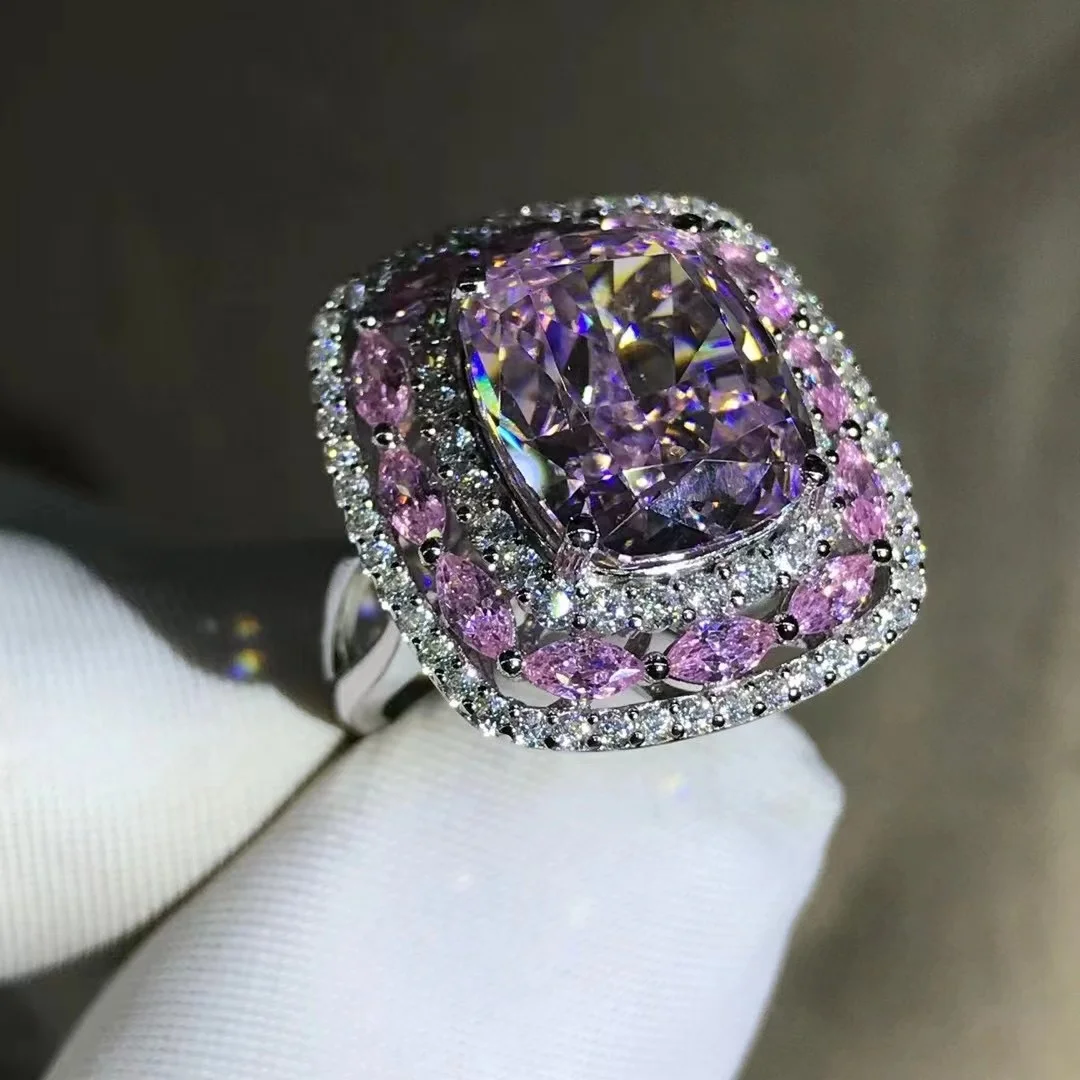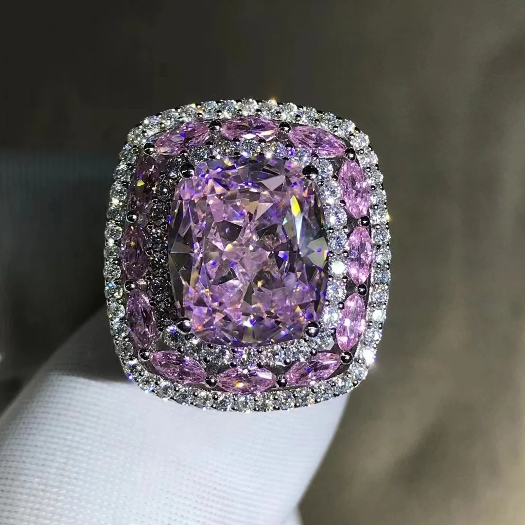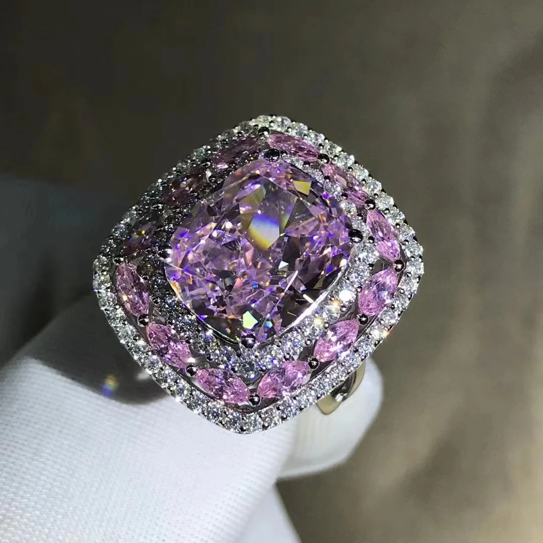 Gica Gema Luxury Real 925 Sterling Silver Ring Cushion Cut 3EX 10CT High Carbon Diamond Gemstone Wedding Engagement Fine Jewelry