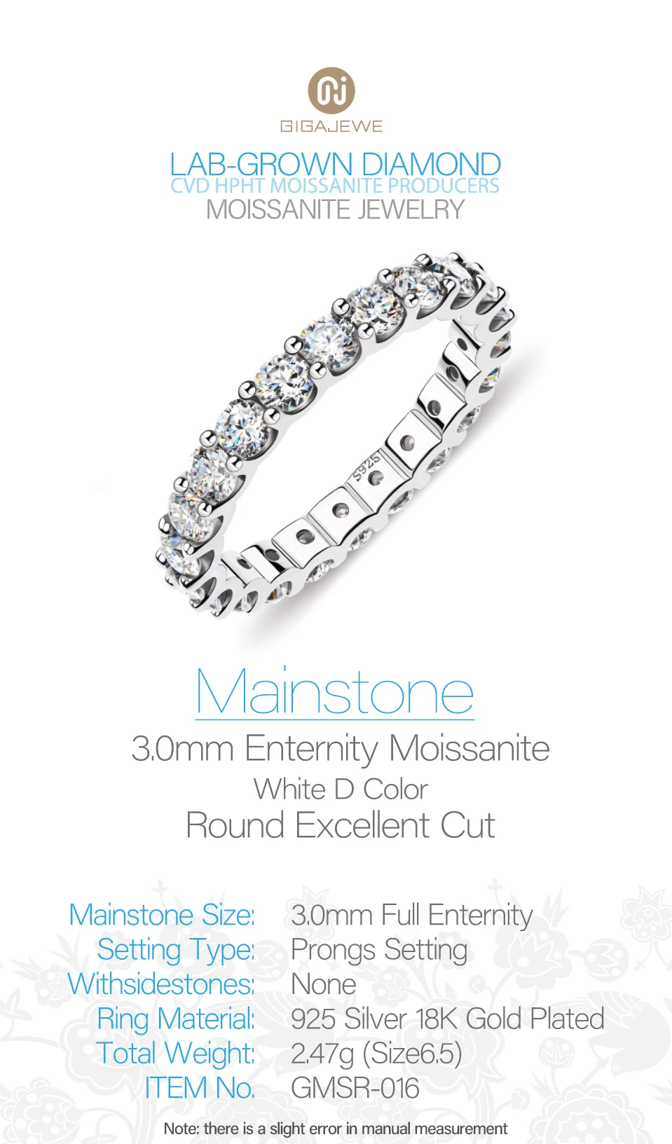 GIGAJEWE Moissanite 2.0-2.4ct 3.0mm D VVS1 Tròn Cắt Bạc 925 Full Enternity Nhẫn Kiểm Tra Kim Cương Đạt Người Phụ Nữ Cô Gái TặngGiấy chứng nhận:CÓ Trọng lượng sản phẩm:2,47g is_customized:Có Đá bên:Không có Số chứng chỉ:/ Tem kim loại:925,Hình dạng Sterlinghoa văn:Tròn Loại cài đặt:Ngạnh Kiểu cài đặt:Cổ điển Số mô hình:GMSR-016 Loại nhẫn:Dịp đeo nhẫn cưới :Giấy chứng nhận của ĐảngLoại:CAL Loại kim loại:bạc Đá chính:Moissanite Giới tính:Phụ nữ Tên thương hiệu:GIGAJEWE Xuất xứ:Trung Quốc đại lục Mỹ thuật hoặc Thời trang:Tốt Loại sản phẩm:Nhẫn